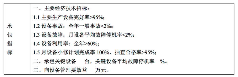 2. 各使用单位每年同公司签订重点设备管理目标承包合同,完成承包的技术指标和效益指标。